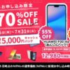 | HUAWEI P20 | 69,600円 | -10,524円(15%OFF) | 59,076円 | 最大5,000円※2 |