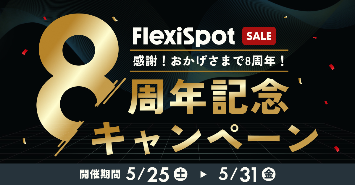 FlexiSpot、最大半額になる「8周年記念キャンペーン」を開催!2024年5月25日(土)~5月31日(金)の7日間限定