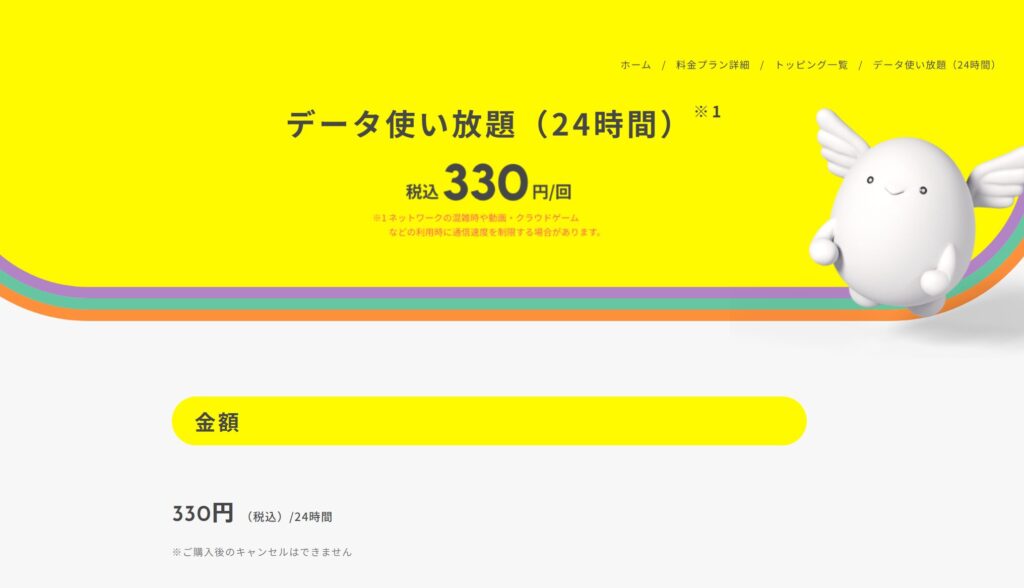 データ使い放題の有効期限が「翌日23時59分」→「購入から24時間」に