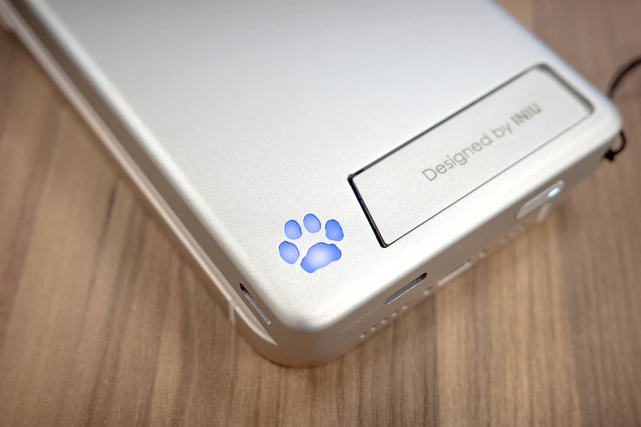 下部左側には、肉球の形をしたLEDランプを内蔵。バッテリー残量を5段階で確認できます。