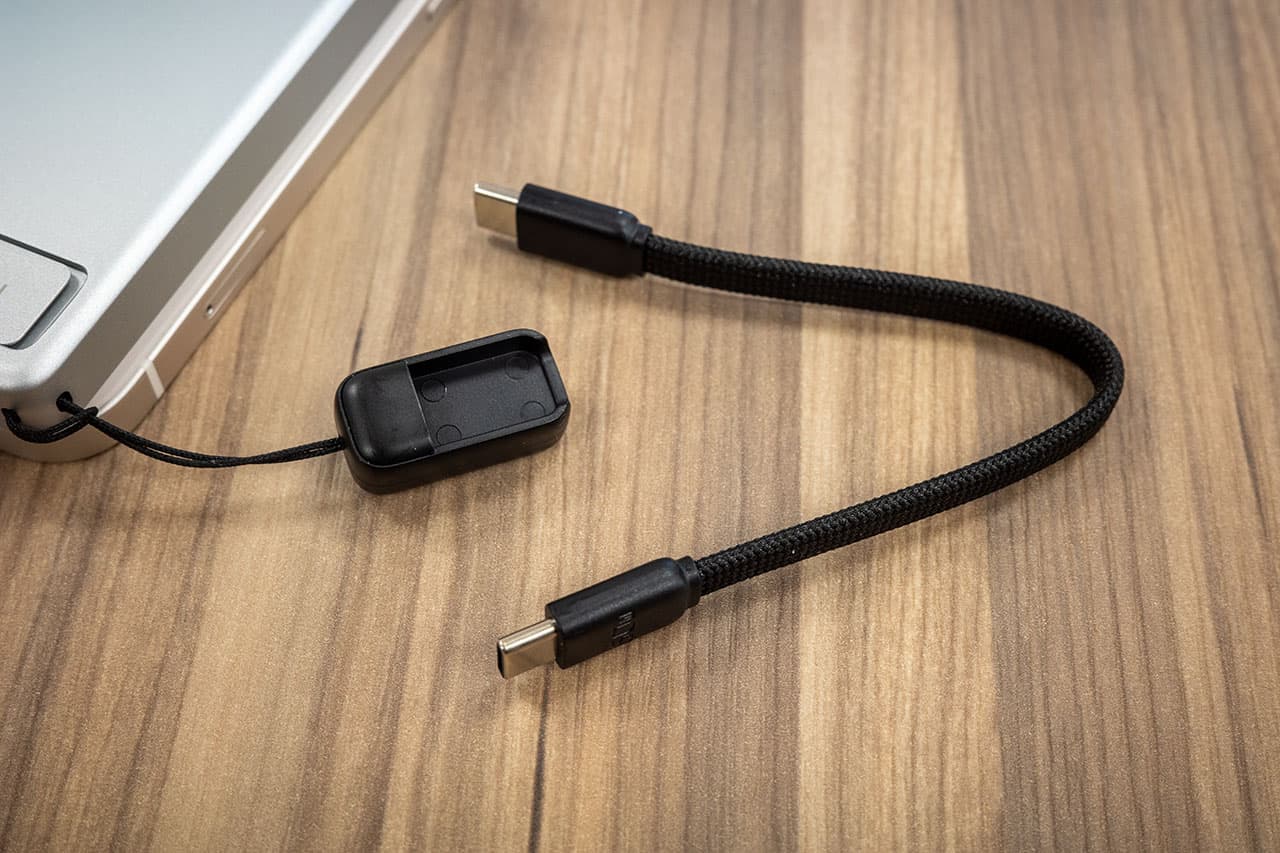 - ストラップ型のUSB Type-C to Cケーブルが付属
