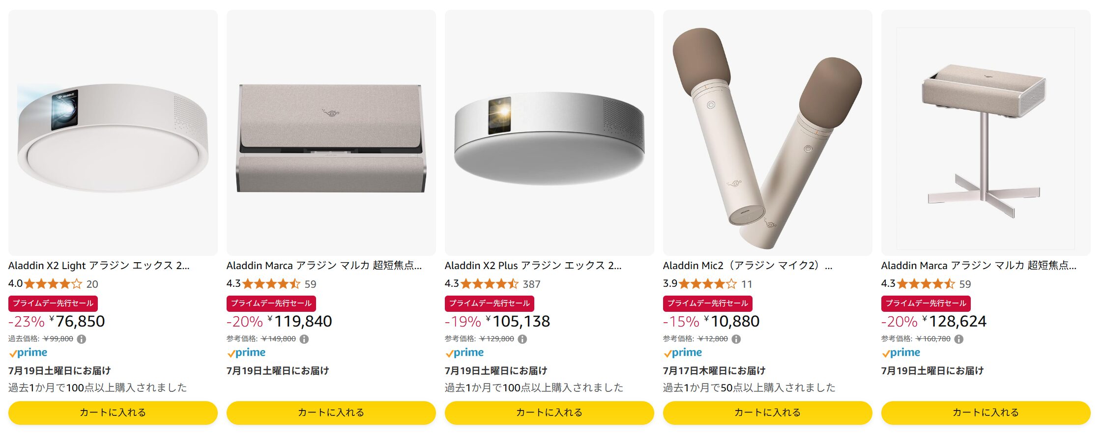 今回のAmazonプライムデーで安くなる製品一例を載せておきます。この他にもセール商品があるので、詳しくはAladdin X ストアをご確認下さい。