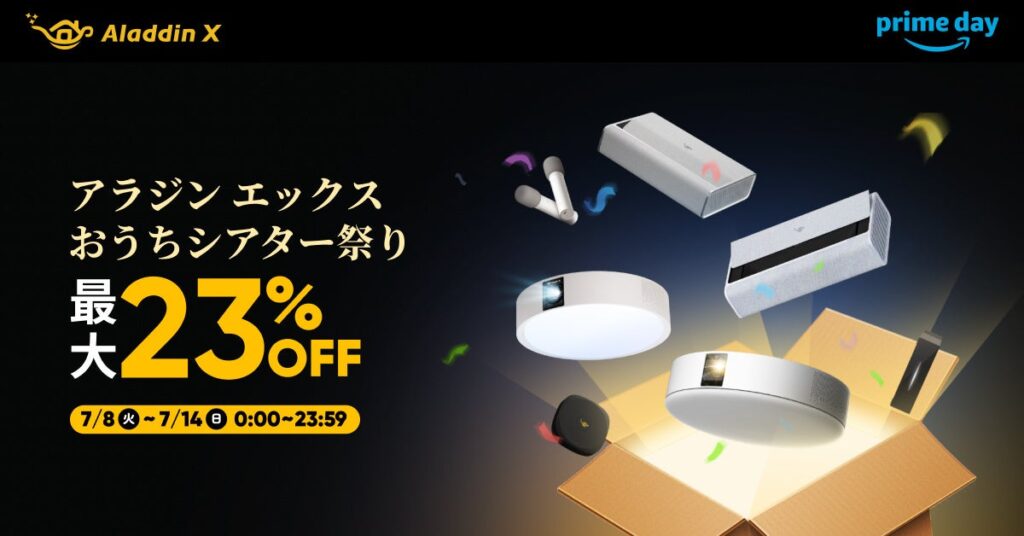 Amazonプライムデー2025にて、Aladdin Xのプロジェクターが最大23%OFFになるセールを開催中です。