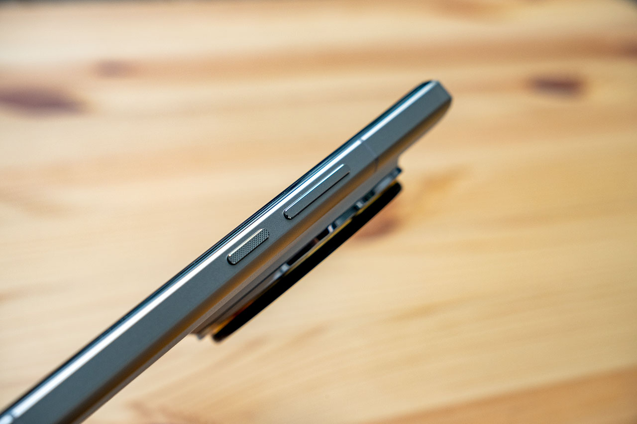 高性能なカメラを積んでいるため、縦持ちで使うとカメラユニット部分が大きく出っ張っていて邪魔に感じます。重心も上に偏ってしまうため、気を抜くと落としそうになります。