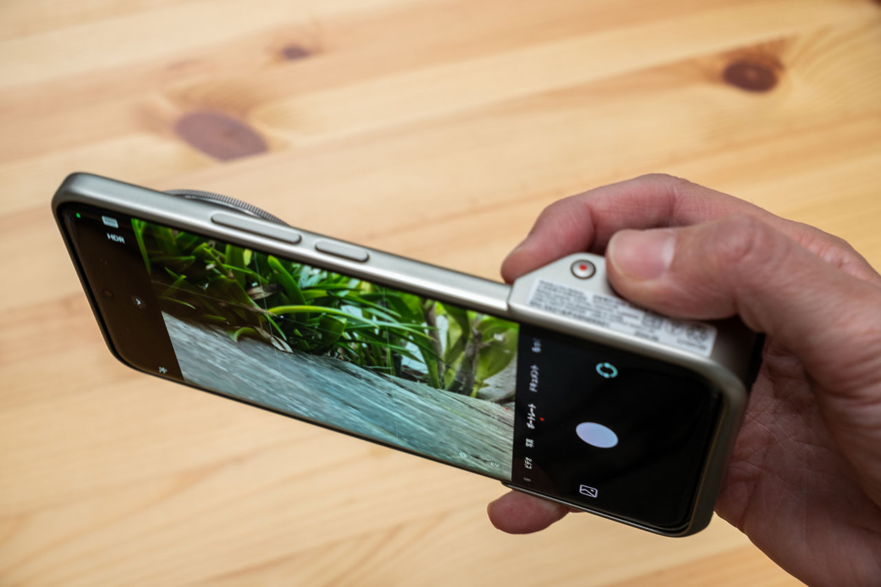 付属のフォトグラフィーキットを接続すると、シャッターボタンやズーム、ダイヤル操作が片手で行えます。ただし、これを装着すると持ちづらく、重量も300g超えのヘビー級になるので次第に使わなくなりました。