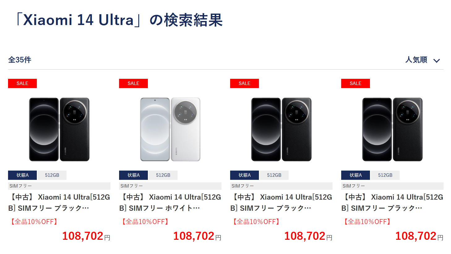 「Xiaomi 14 Ultra」は中古価格が安くなり、ゲオオンラインストアでは10万円ちょっとで買えるようになりました。この価格であれば今買っても十分満足できる性能だと思います。