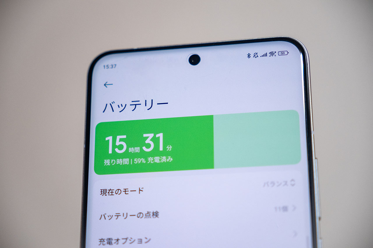 バッテリー持ちはあまり良くないですが、充電スピードが早ければそこまで気になりません。純正以外の充電器を使ったときは22.5W程度まで落ちてしまうので、すぐ充電したいときは付属の充電器や「Xiaomi 90W HyperCharge Power Adapter」を使いましょう。