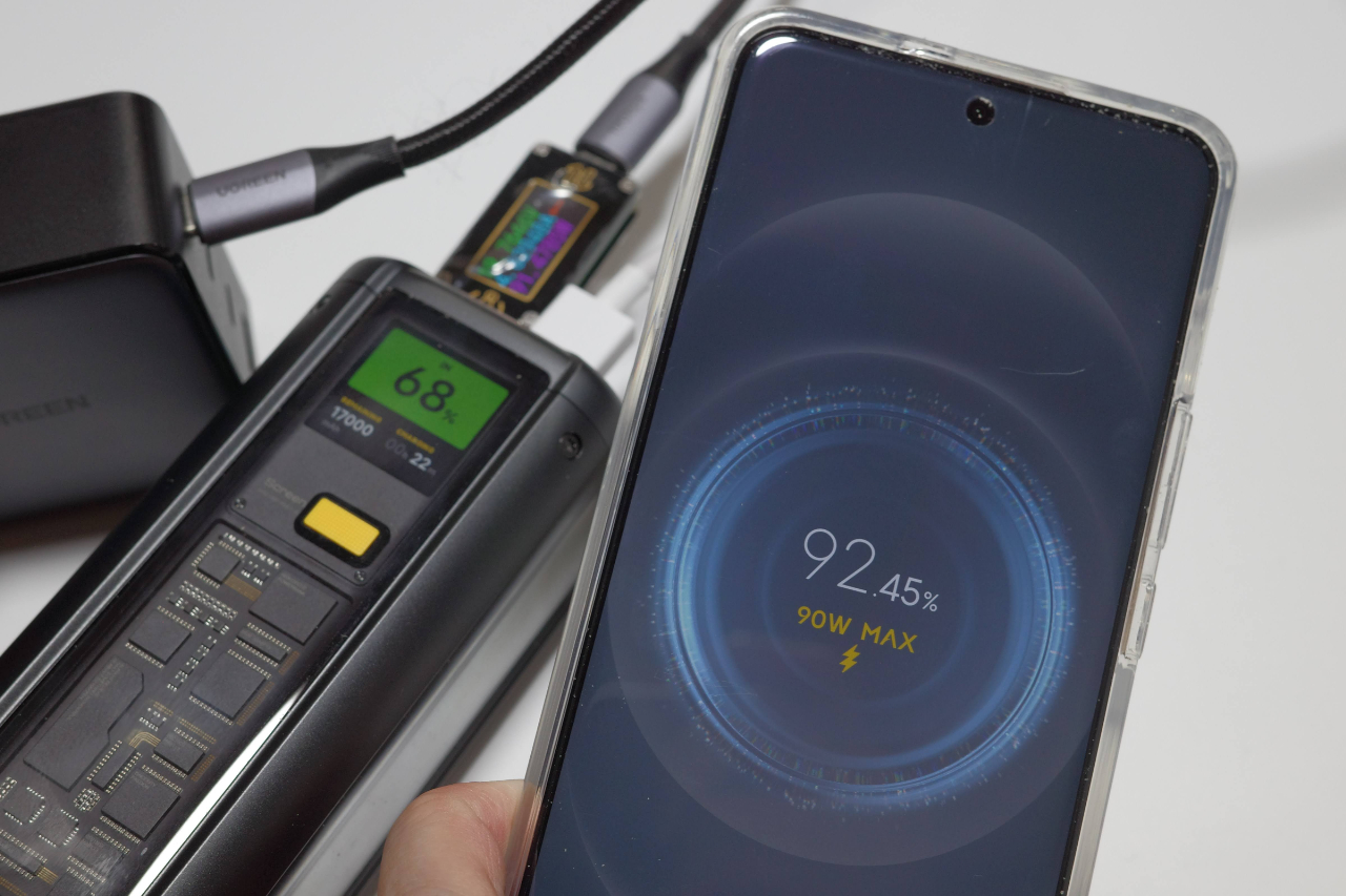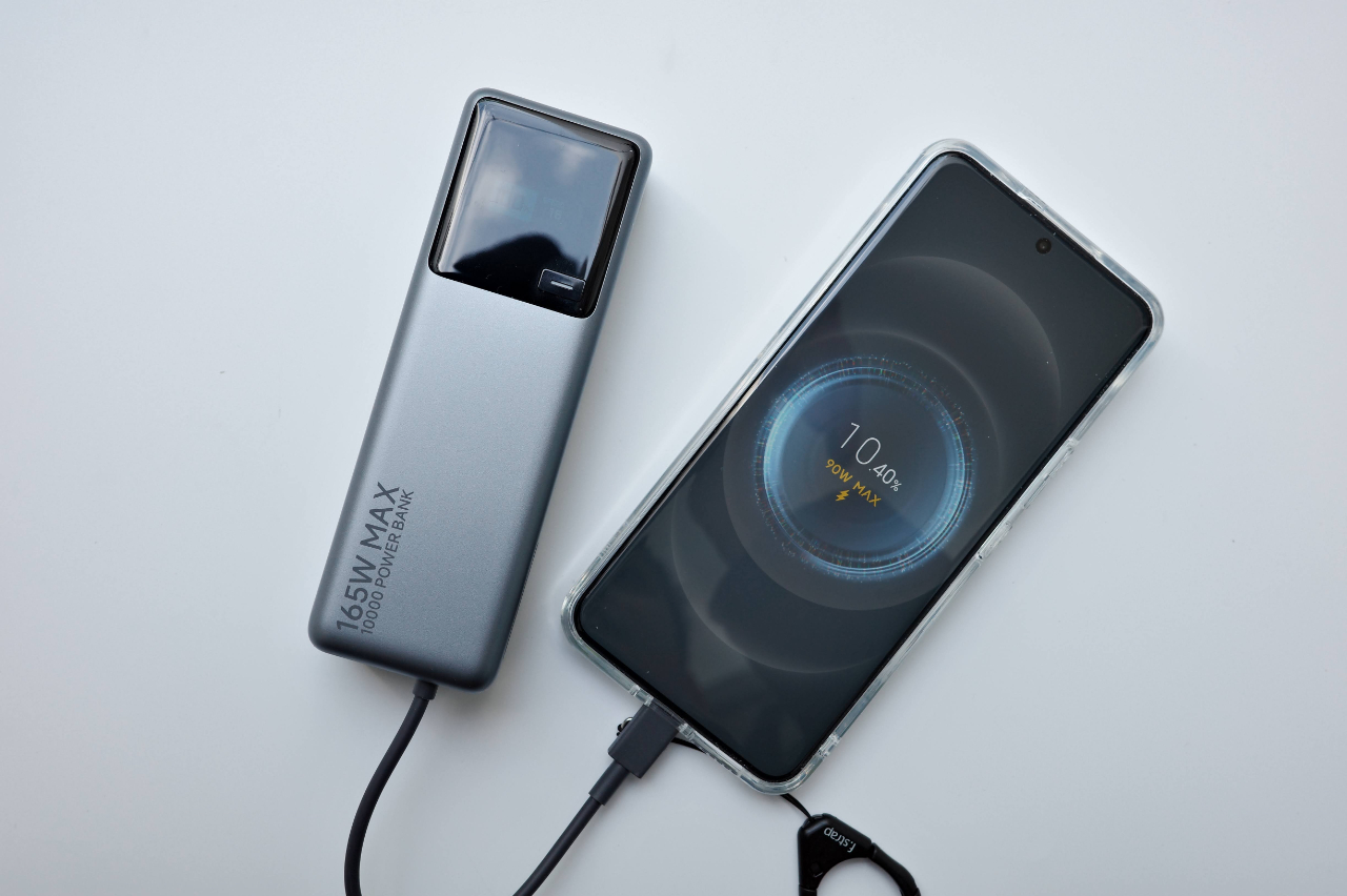 モバイルバッテリー本体の充電も最大90Wで行えるため、10,000mAhの容量を15分で75%まで回復可能。充電待ちのストレスから解放されるイチオシの製品です。