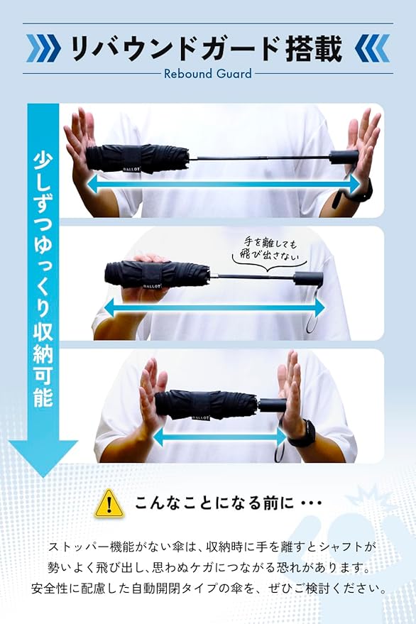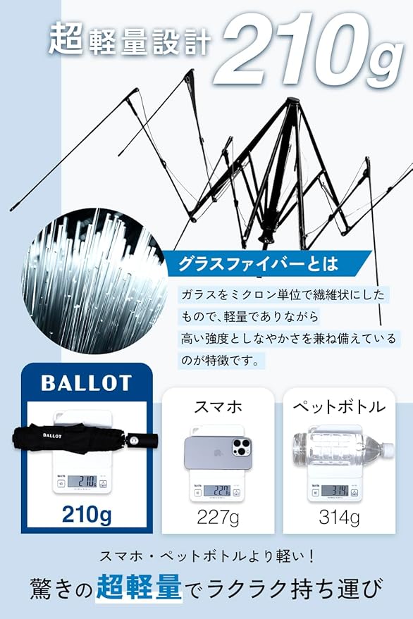 今回は、自動開閉式でわずか210g(実測値208g)のBALLOTの折り畳み傘をレビューします。スマホ1台分の軽量設計に加えて、形状記憶加工やリバウンドガードによる収納のしやすさ、価格帯を含めてバランスの良い製品だと思います。