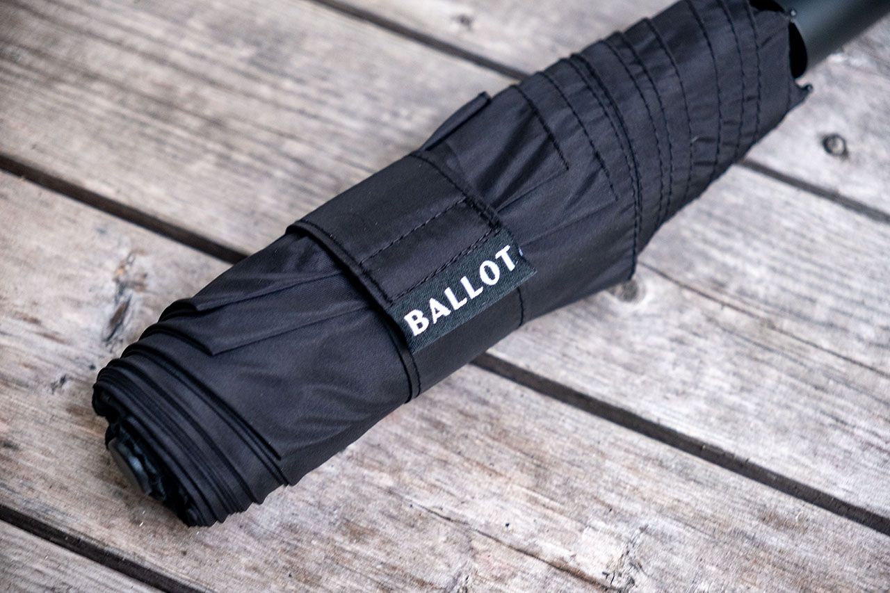 BALLOTの自動開閉式折り畳み傘をレビューしました。折りたたみ傘の小さなストレスを解消できて予想以上に便利な製品でした。
