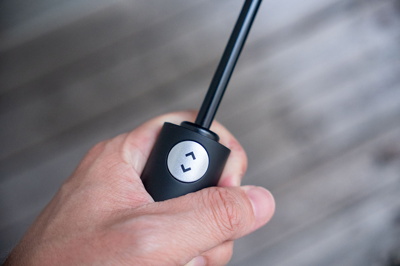 ハンドル部分のボタンを押すと、中棒(シャフト)が伸びて傘が開きます。展開もスムーズで引っかかる感じはありません。