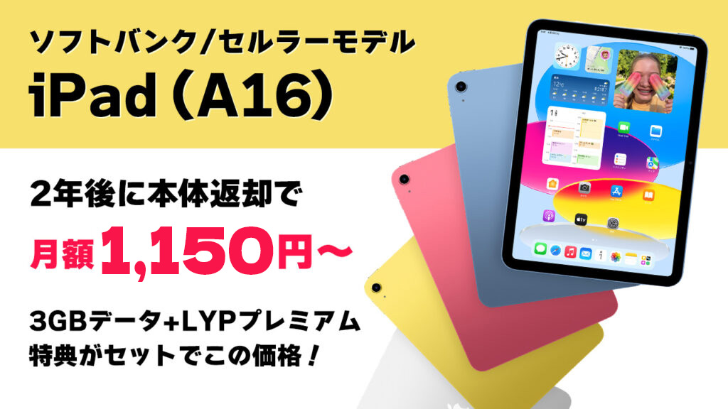 ソフトバンクのiPad(A16)が通信費込み月1,150円でレンタル可能に!