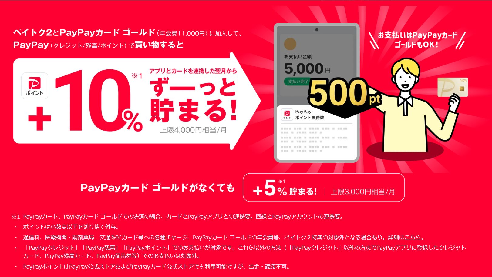 ペイトク2特典 PayPayポイント付与率 +5% +10%