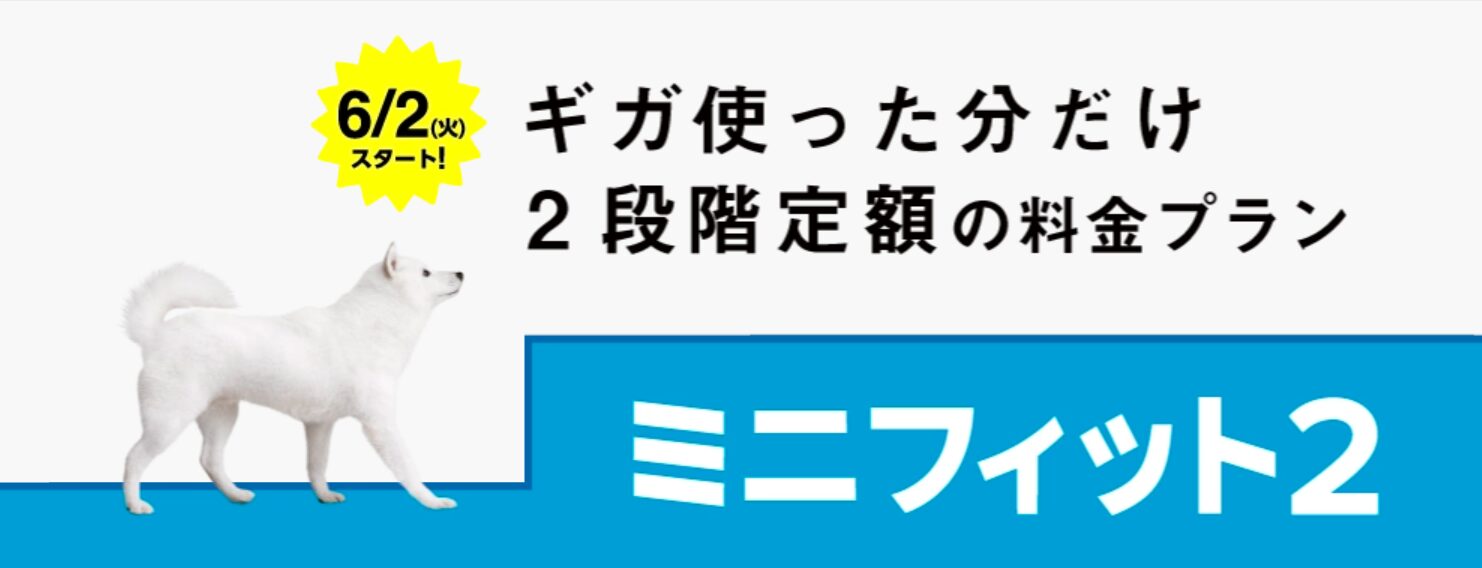 ミニフィット2は、毎月のデータ使用量に応じて2段階の基本料(2GBまで、5GBまで)が自動的に適用される料金プランです。